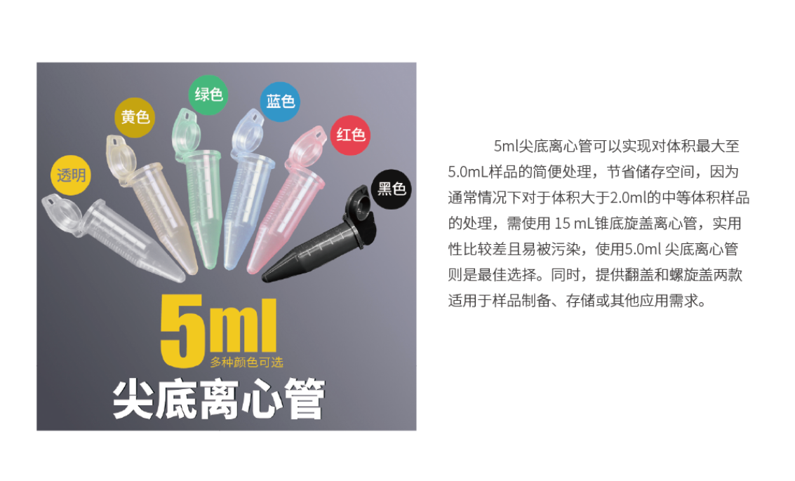| BS-50-CM-S | 5ml,尖底,透明翻盖,无菌 | 包装说明:100支/包,20包/箱; biosharp |