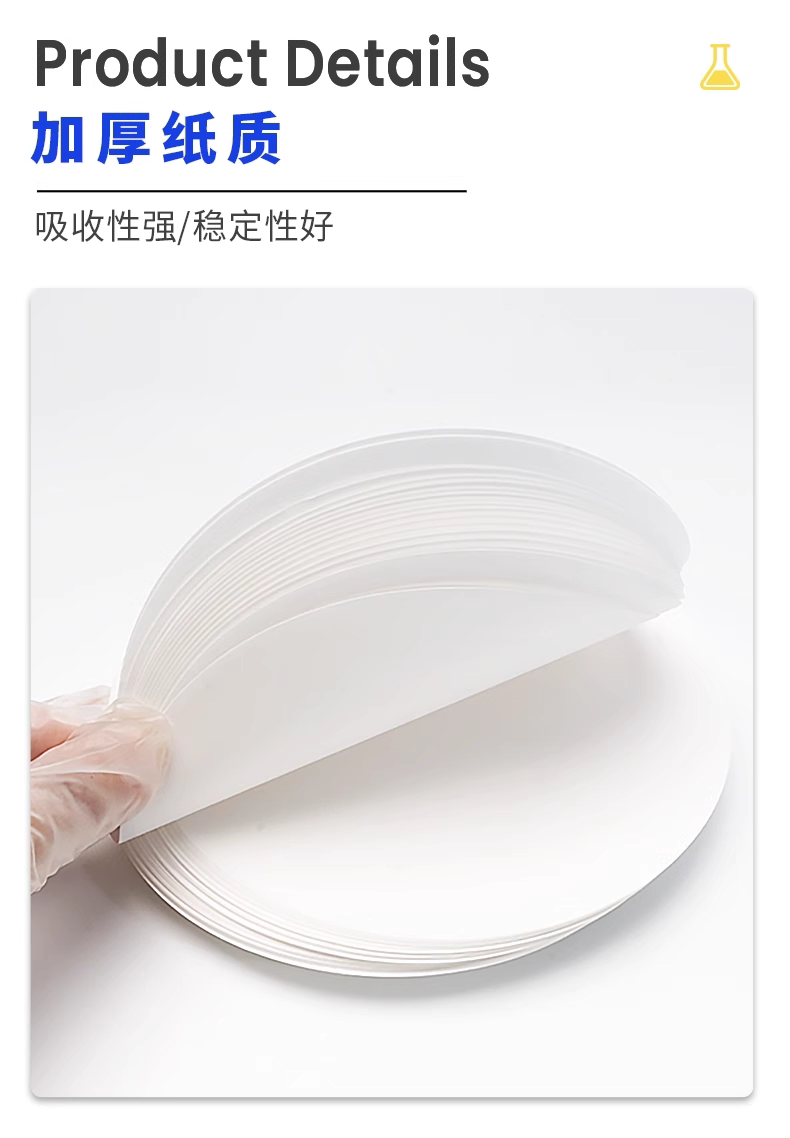 定量滤纸:主要用于过滤后需要灰化称量分析实验,即定量化学分析中重量法分析试验和相应的分析试验,其每张滤纸灰化后的灰分重量是个定值;