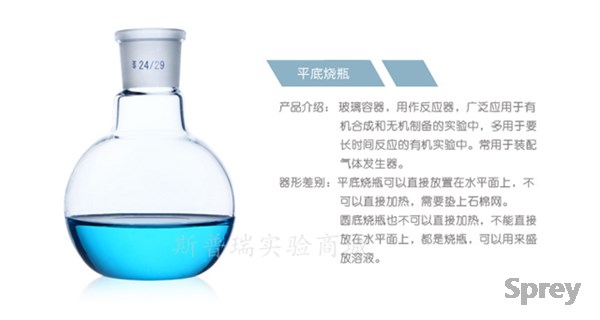 1.平底烧瓶由于底部较平,当加热时会受热不均匀,因此一般不用作加热的反应器。